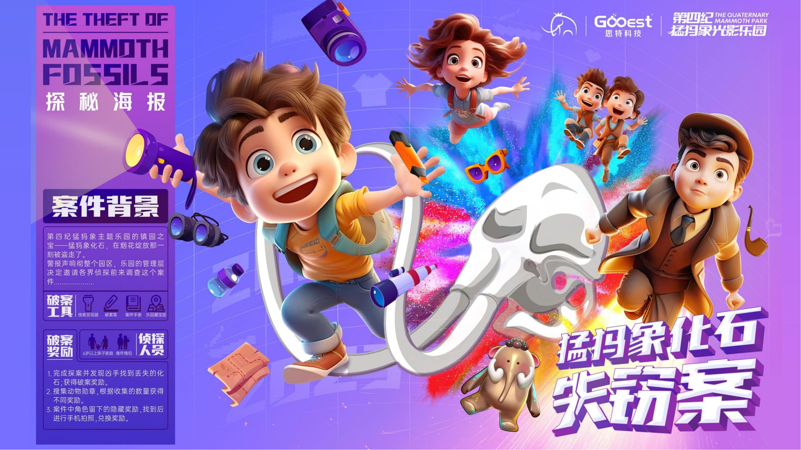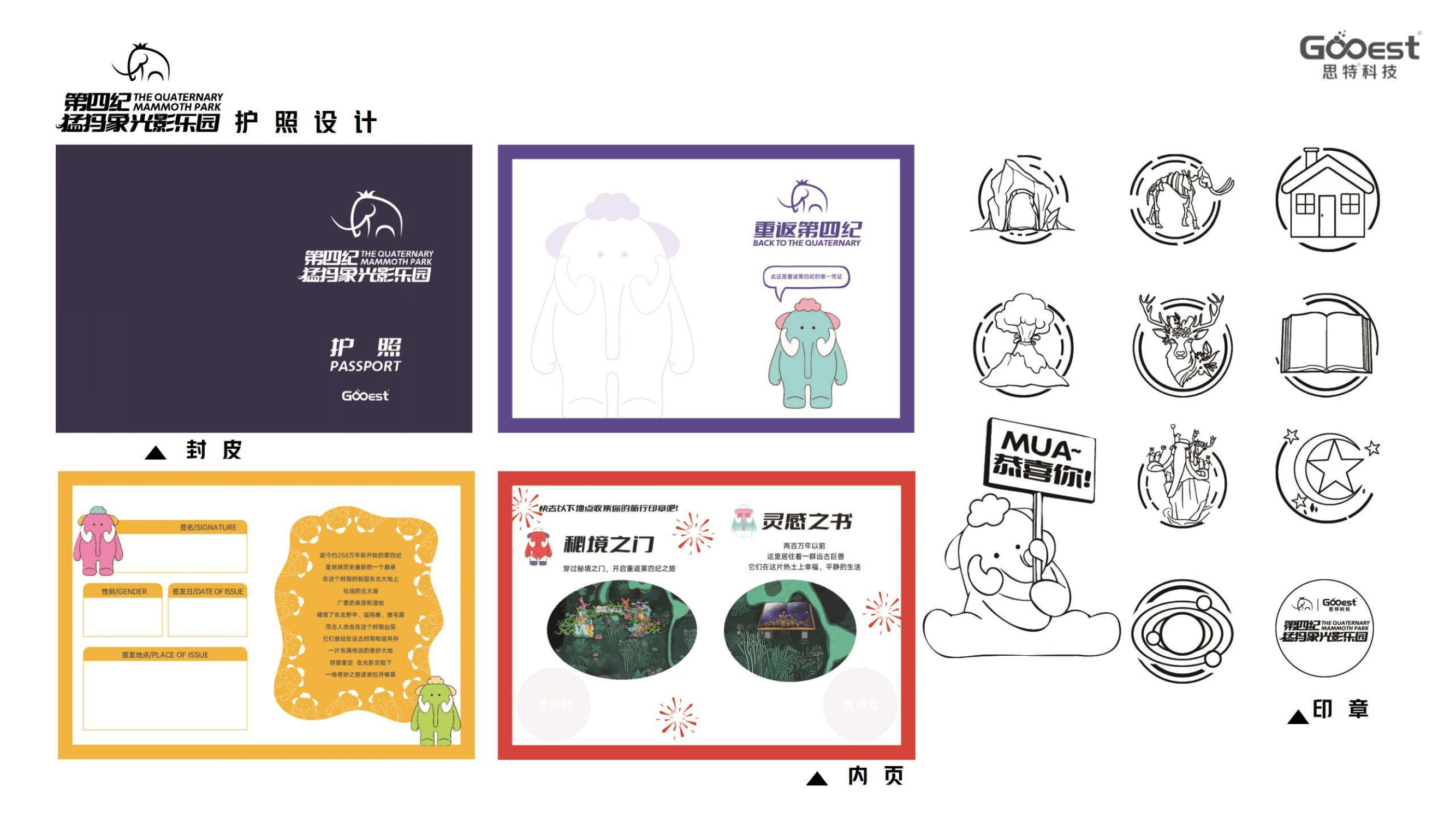 思特科技为「第四纪猛犸象光影乐园」设计创作一整套的原创IP形象,在市场端树立了独特的品牌形象,为乐园开发相关文化产品、授权合作等奠定重要基础。 原创IP的打造和IP延展设计,是该项目的内核,生成了独特的、高辨识度的、无法被复制的知识产权架构。其中,主KV设计是项目的关键一环, 足以传达出项目的核心理念和独特的品牌形象。「第四纪猛犸象光影乐园」衍生品设计,保持了IP的独特性和风格,依据市场需求和消费者喜好, 进行系统性开发,拉升了乐园二次消费。