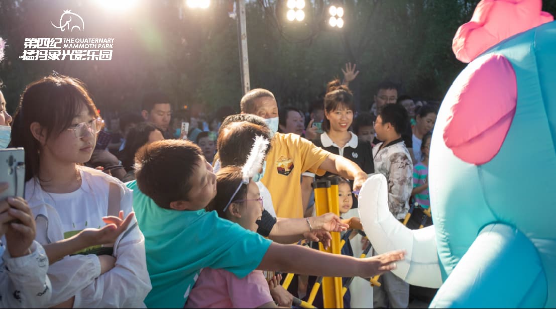 「第四纪猛犸象光影乐园」持续开展丰富多彩的主题活动,活动形式包括线上和线下两种, 线上通过抖音平台搭建专属话题,持续吸引用户关注,保持用户的活跃度和粘性;利用微信公众号平台,发起一系列转发活动,如征集10000名首席体验官的方式, 扩大活动的影响力和参与度。线下活动,融入猛犸象这一独特元素,结合受众群体的需求,推出一系列创意活动,如周五烟花秀活动、人偶知识问答及互动活动、 “红领巾”带你巡游猛犸乐园青少年主题研学活动、博物馆国家级专业讲解团队讲解——畅游“第四纪动物乐园”活动、剧本杀活动——猛犸象化石失窃案等, 放大目标群体覆盖,有效扩大乐园影响力。