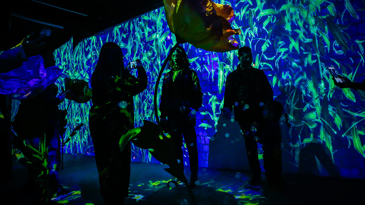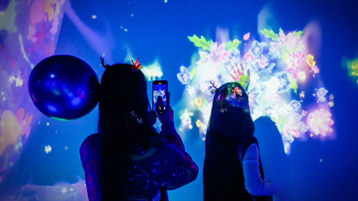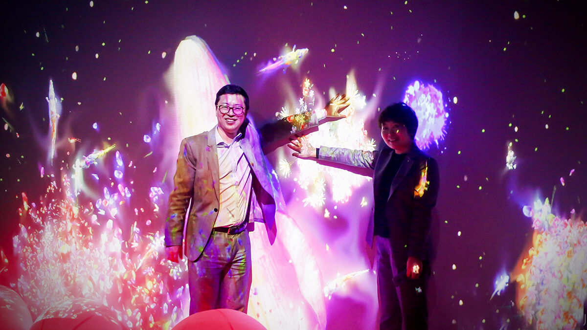 所以在此次活动策划期间,思特团队结合榕城江上图售楼中心的实际情况,依托福州传统文化,取山水之间灵动的意境,巧妙的将现代数字艺术设计与自然景观相融合,打造三项大型数字艺术互动装置,为本次开盘活动助力。