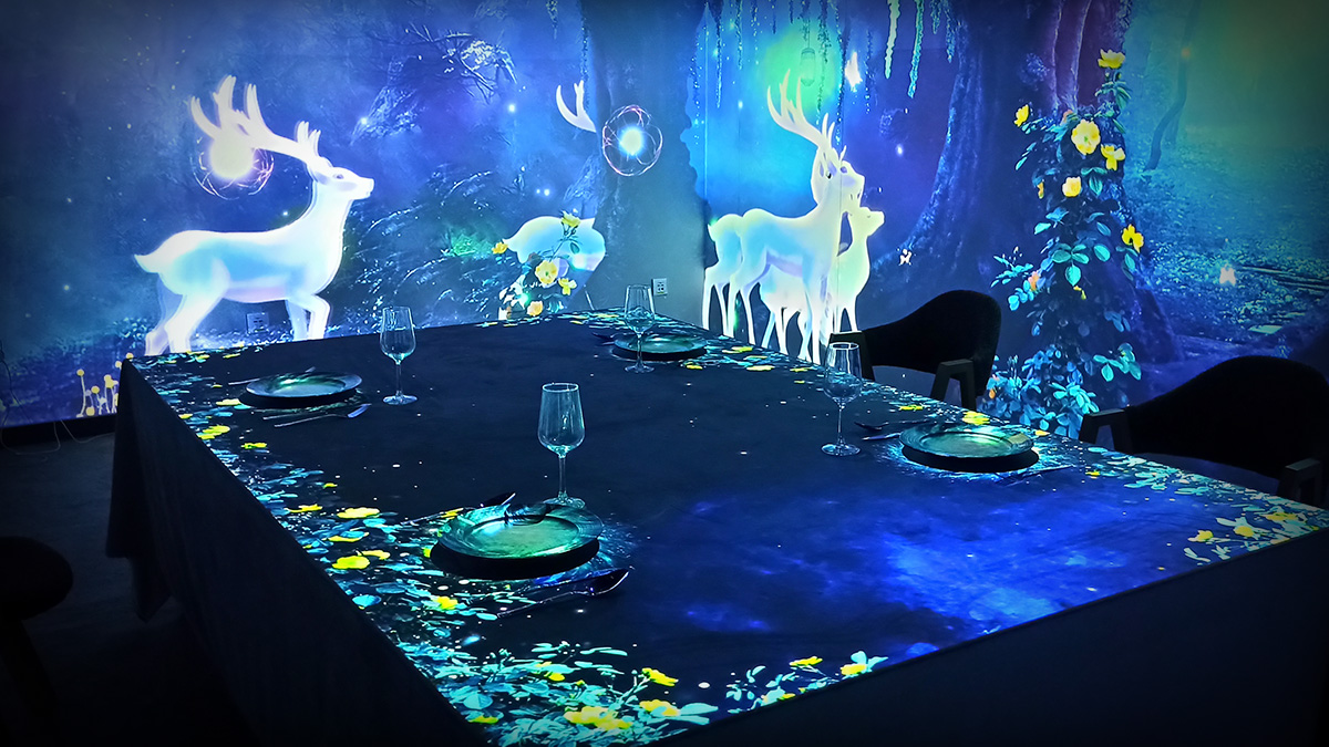 思特科技为北京光影餐厅提供全息沉浸式餐厅投影。