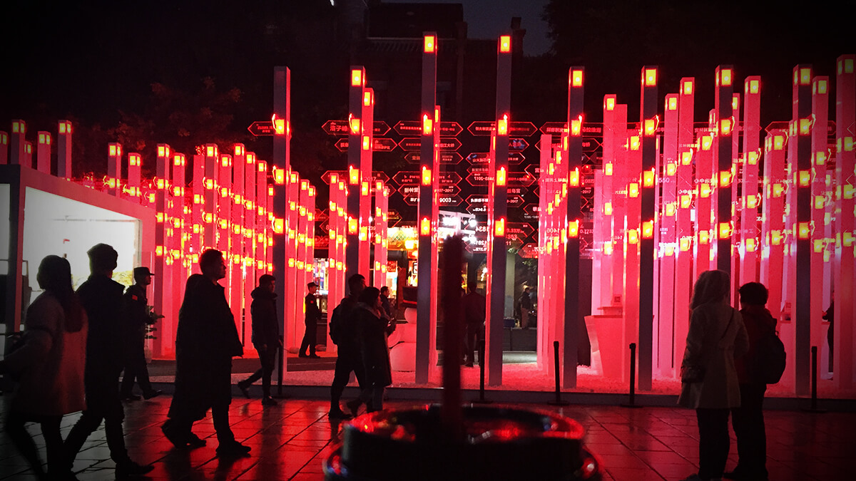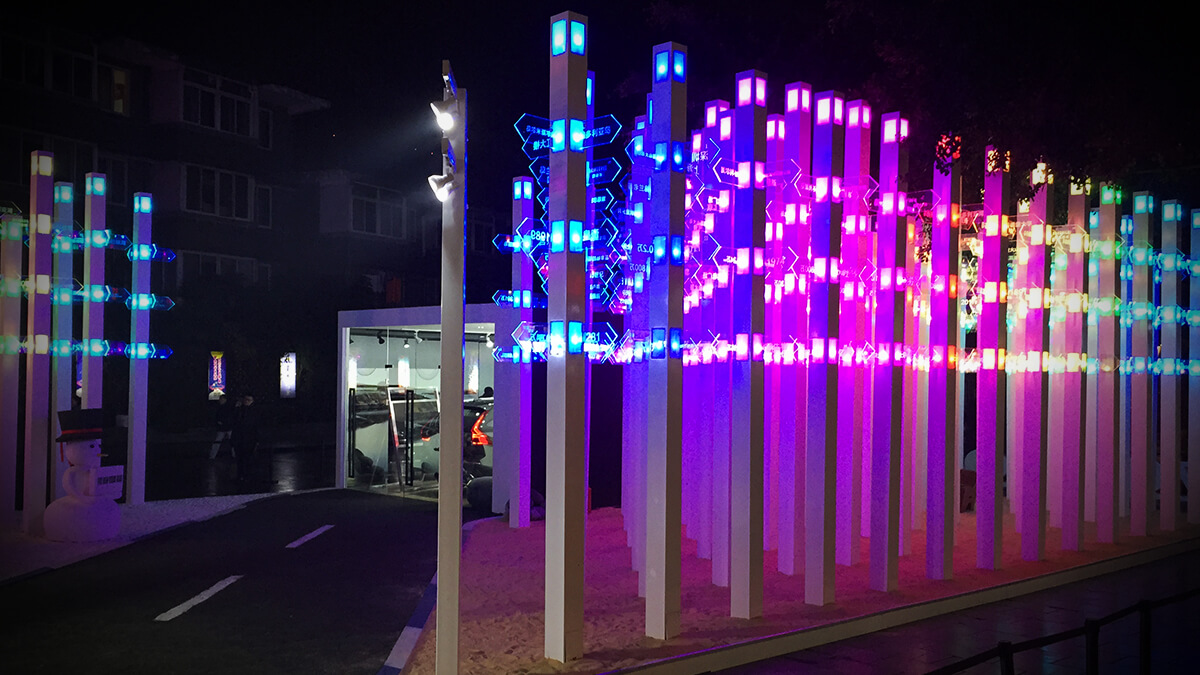 思特科技潜心研究,大胆构思,首次将大型户外灯光装置搬进成都,束束灯光合理布局,整齐划一,顺势围绕在沃尔沃全新XC60周围。