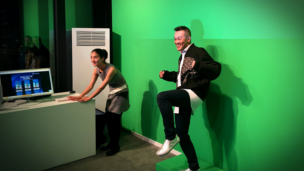 微信拍拍乐利用绿幕抠像技术将各汽车图像场景与人物结合在一起完成虚拟拍照,并且照片合成后可通过扫描二维码将照片上传到手机上,