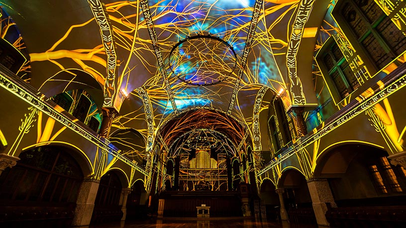 在精选的夜晚,我们的沉浸式灯光装置通过现场音乐会和超级经典音乐会,风琴家SachaRüegg和打击乐手Sebastian Hofmann,电子音乐品牌Naturklang以及视觉艺术家 FrançoisChalet的表演得到增强。