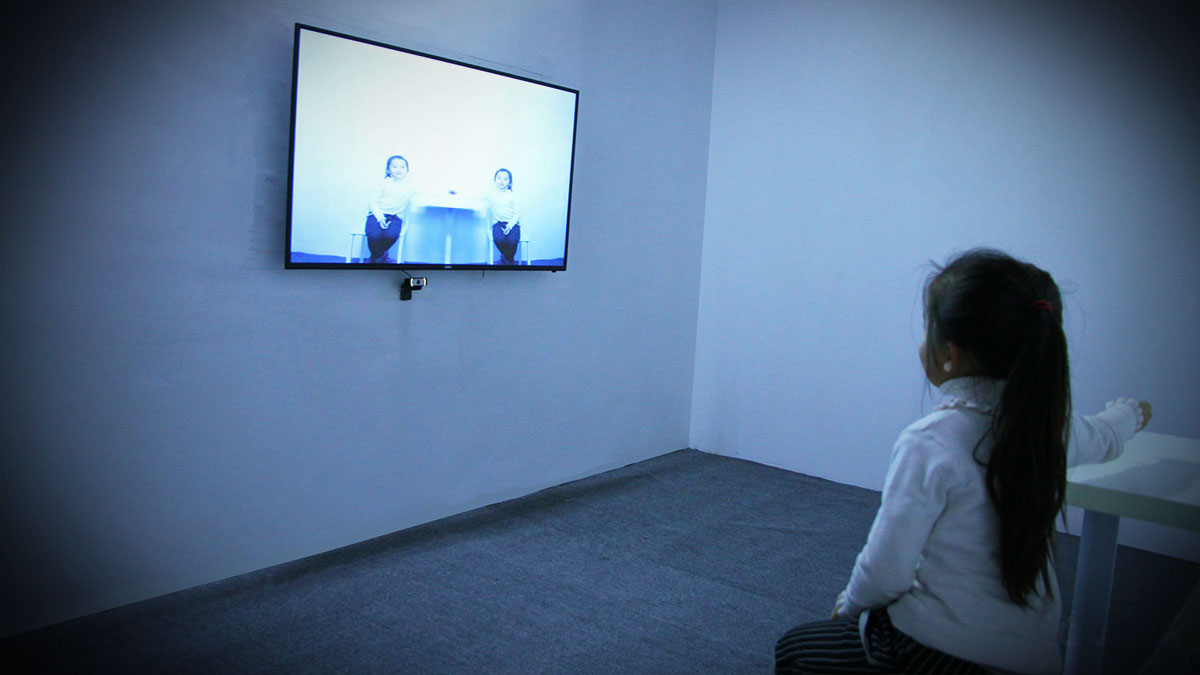 思特科技研发制作的光影交互游戏《平行世界》通过结合光影技术与计算机技术,让小朋友们与另一个“自己”互动。