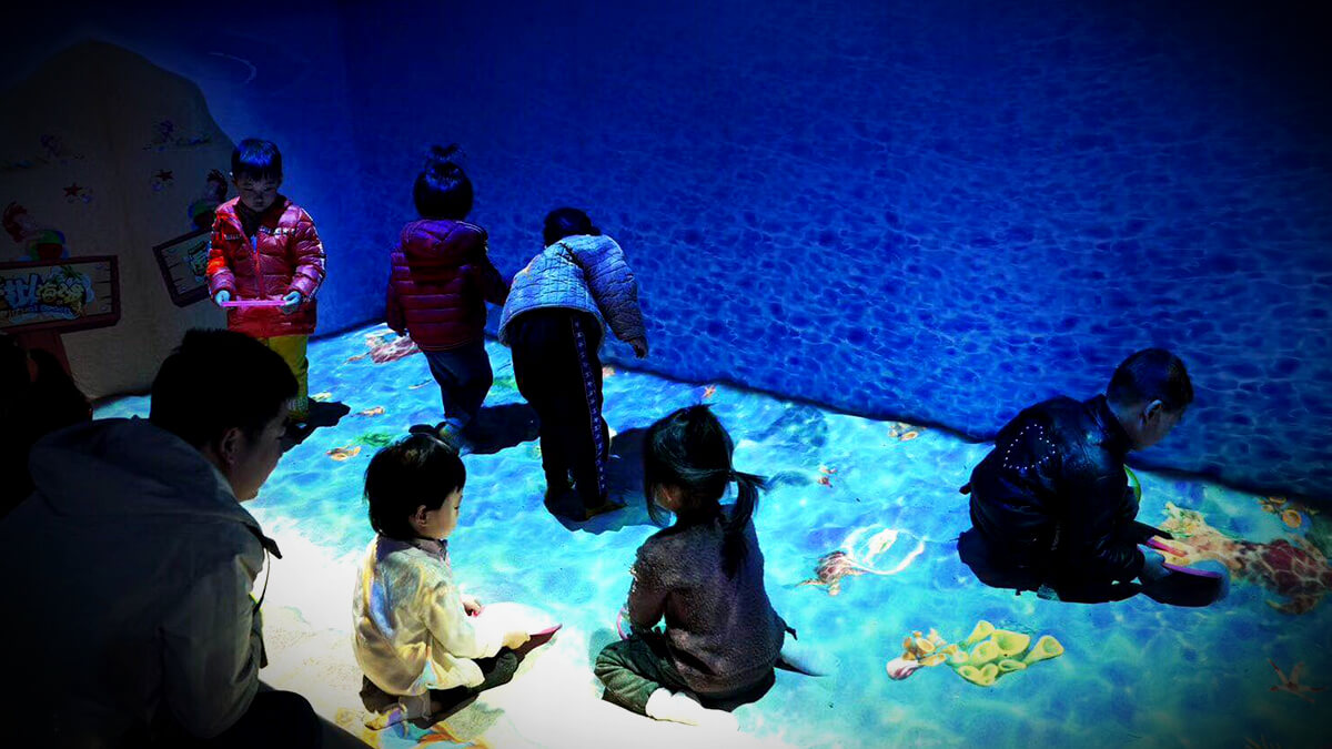 思特科技联手济南环宇城打造大型光影互动游乐园,其中主要展品有虚拟海滩、动感地面、繁花瀑布、魔法海洋、重返汪星球、鲸鱼宝藏、花海。
