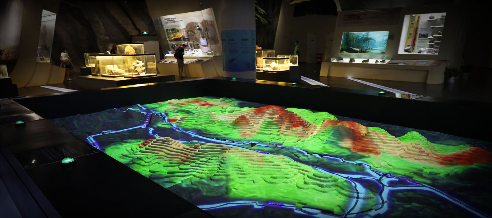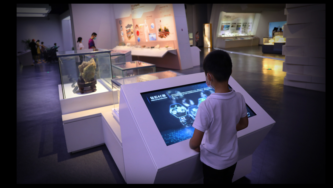 在“地层天书”展区,为了深化参观者对于地层中各种矿物化石知识的理解和认知,思特科技借助互动体验的方式,利用滑轨屏幕与展台结合,参观者将屏幕移动到互动点位后将会播放对应内容。相较于原展台,思特科技重新设计滑道内部结构及软件UI界面,给游客一种焕然一新和更现代的视觉体验。