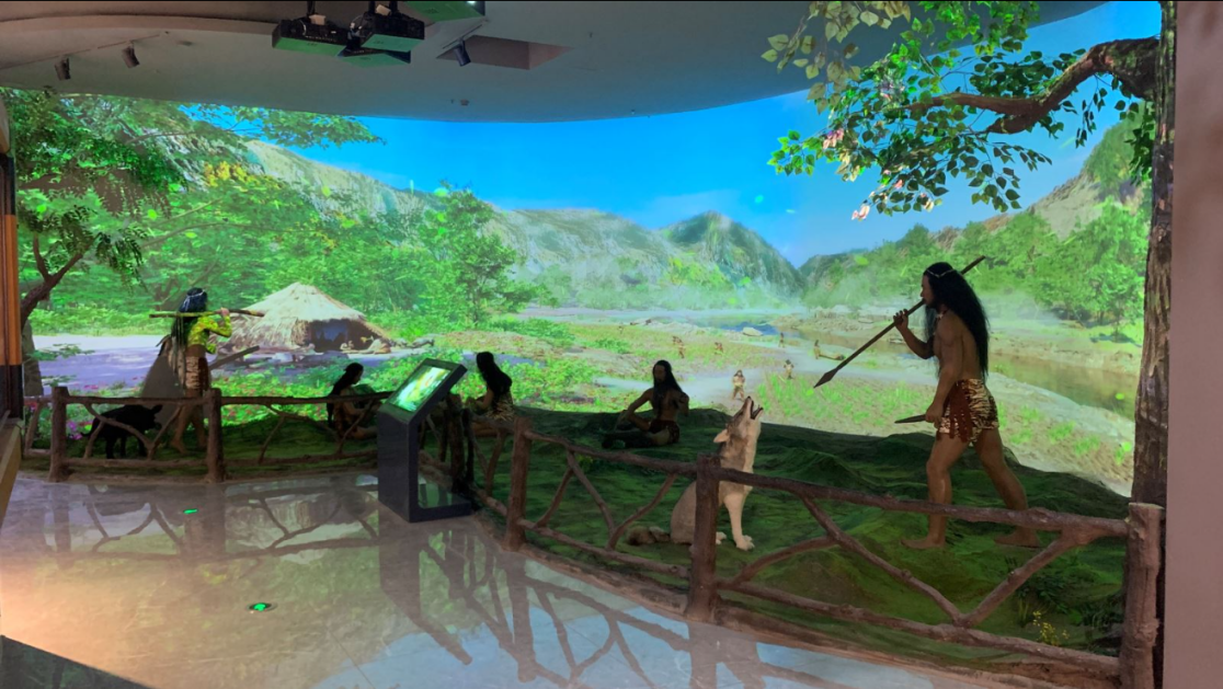 技术团队沿用空间造景+数字影像的经典拍档,淋漓尽致的发挥运用边缘投影融合技术,以逼真的色彩、精细的纹理及和谐的视听,极尽展现中国北方现存唯一的渔猎民族——赫哲族的文化魅力。