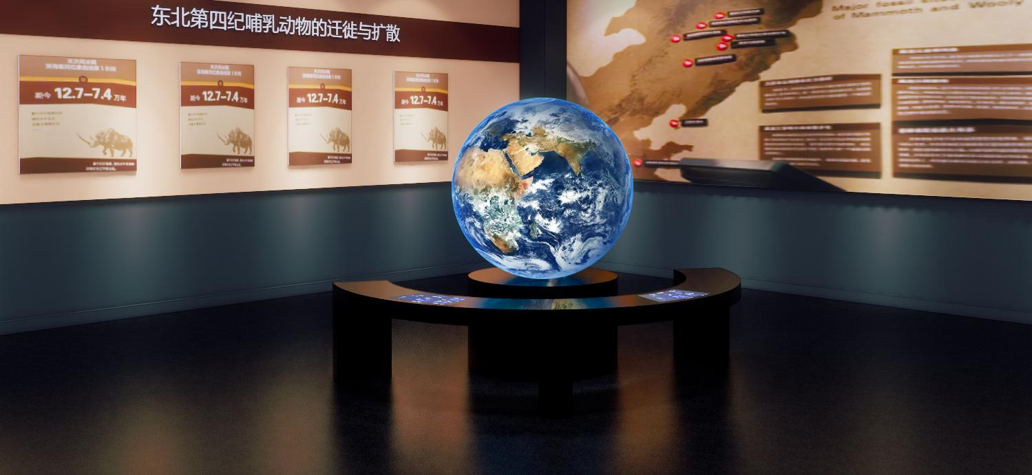 ♦猛犸象迁徙路径♦对触控台和内投球底座进行了重新设计,触控屏从3个调整为2个,分别展示猛犸象科普信息以及迁徙路径。展示迁徙路径的触控屏与内投球联动,在数字画面展示的地球上标识出所选择猛犸象的迁徙路线