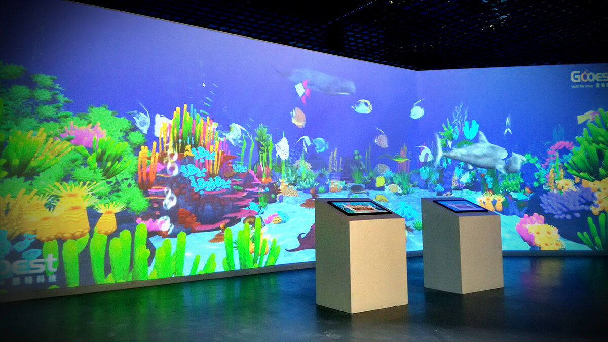 思特科技根据四川蓝光空港韩国城现场实际情况,为其鼎力打造了魔法海洋、疯狂魔法球两款儿童娱乐互动产品,增加娱乐城趣味性科技感。
