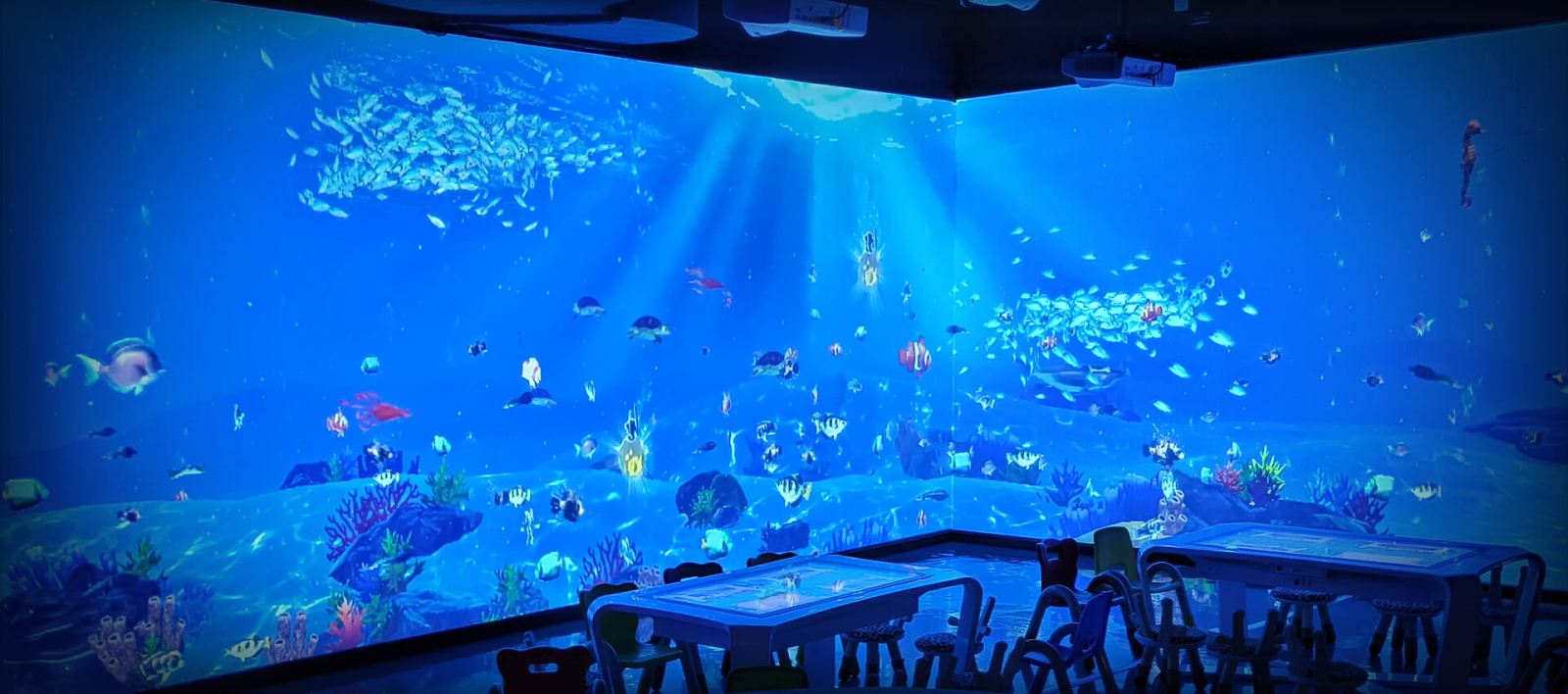 海洋蕴藏着丰富的资源和旖旎的风景,游弋着各种各样的鱼儿,丰富多彩多种多样。思特科技魔法海洋(写实版),逼真的鲨鱼在海洋馆中横冲直撞,触摸后撞击屏幕,屏幕出现裂纹。