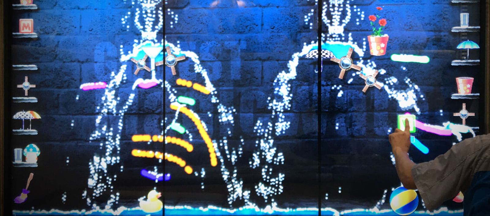 《魔法实验室》是一款多点触控互动游戏产品。产品将传统墙面游戏数字化,支持小朋友通过既定道具或手绘涂鸦等方式自由创造图形结构,引导水流等元素形成互动效果,让孩子在探索中提升创造力和动手能力。