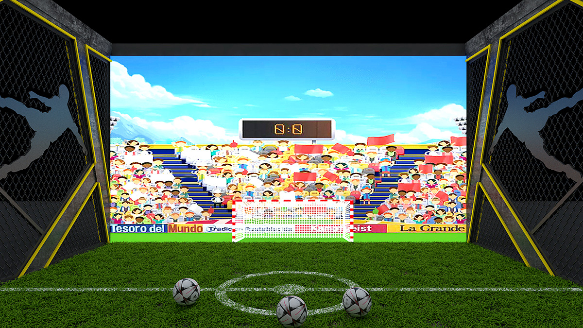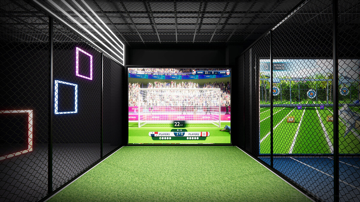 本产品多角度还原足球赛场。在室内能够感受真实的赛场环境,紧凑的运动模式,配合空间和音效形成沉浸式体验,同时真实模拟角度与速度的训练作用,激发体验者的运动竞技热情。