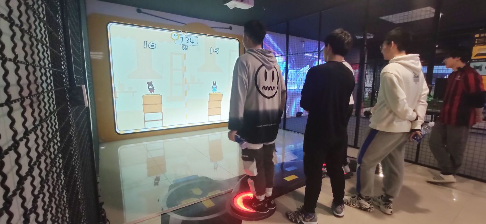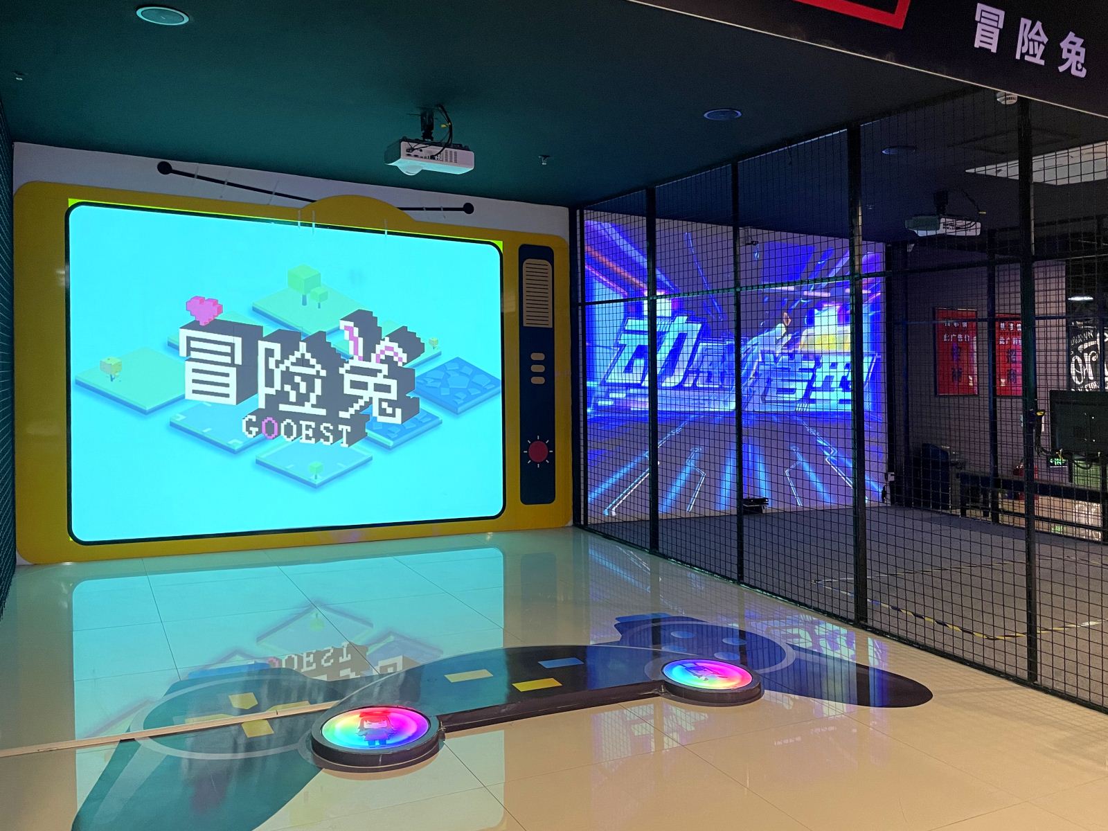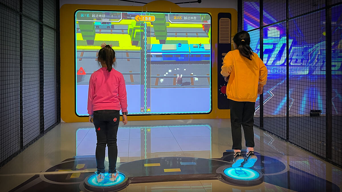 冒险兔是以地面互动装置为基础,通过数字多媒体技术,打造戏剧性的剧情和呆萌的卡通形象,让小朋友参与并沉浸在竞技的游戏中,通过蹦跳进行互动,给小朋友身临其境的游戏体验。同时还可以锻炼小朋友的注意力,身体协调能力