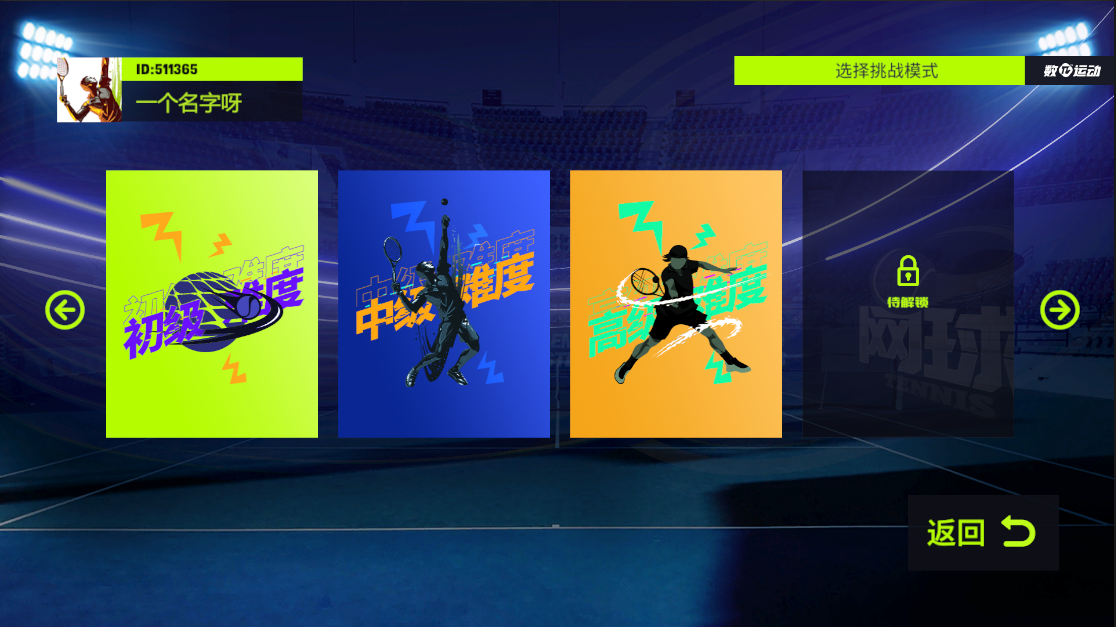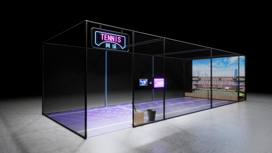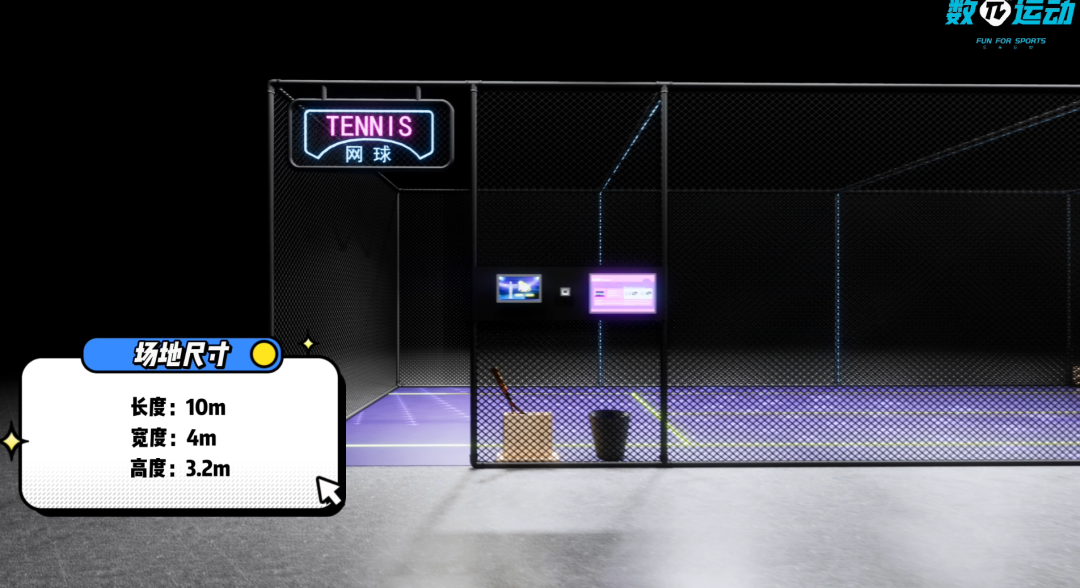 网球是一款利用发球机与软件画面营造出真实比赛场景,实现了玩家通过击球与画面中的AI进行实时多拍对抗的运动竞技类互动产品。在保证竞技性的同时,玩家可进行不同难度的挑战,最终进行排名并获得成就和积分,可用于兑换个性人物皮肤,特效。