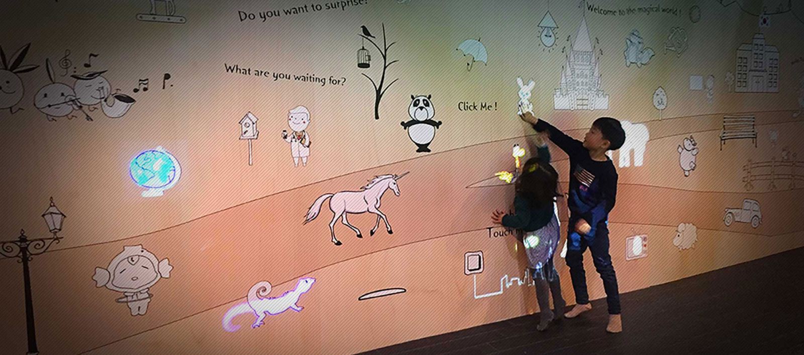 《霍格沃兹的墙》是思特科技针对3-8周岁的小朋友研发的游戏,适合投放于儿童乐园、游乐场、淘气堡、公园、亲子活动现场等多媒体互动的场所。产品支持单屏和双屏两种分屏数量,小朋友们可以通过触摸墙面实现与游戏的互动。
